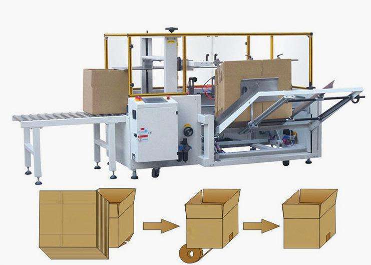 紙箱成型機是指自動完成開箱、成形、下底折葉折曲,并現(xiàn)時完成下部分膠帶粘貼,將疊成紙板的箱板打開,箱子底部按一定程序折合,并用膠帶密封后輸送給裝箱機的專用設備,又名紙箱開箱機。